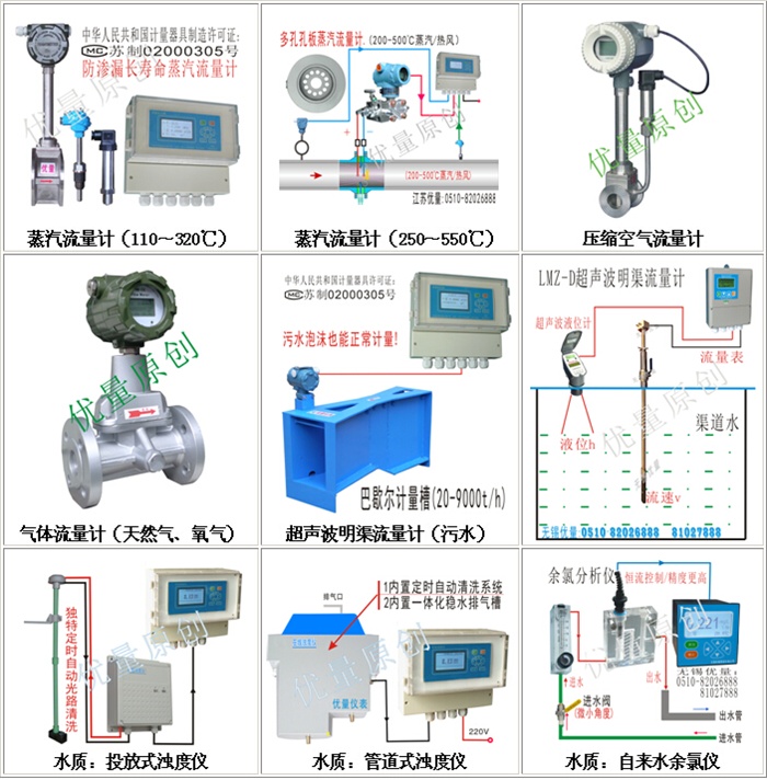 無錫優量其他產品:蒸汽流量計、氣體流量計、超聲波明渠流量計、在線濁度儀、自來水余氯儀