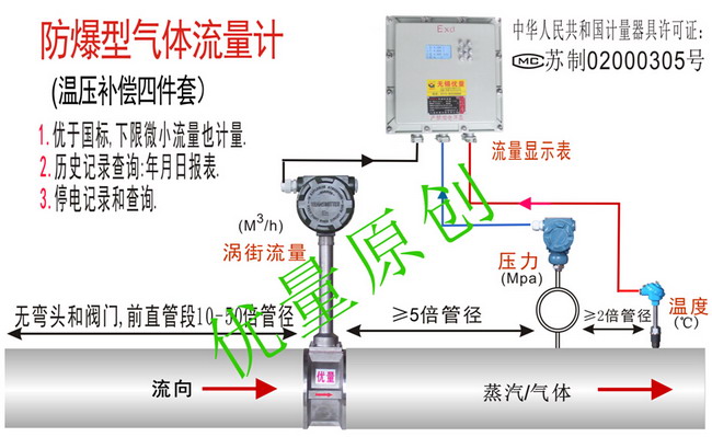 1、飽和蒸汽流量計(110-220度)----------溫度補償高精度的質量流量 |